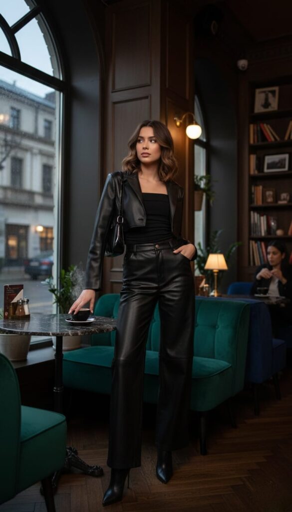 - Secondary Keywords: Cafe fashion trends 2026, winter coffee outfit, leather pants styling, clean girl aesthetic, casual chic wardrobe.